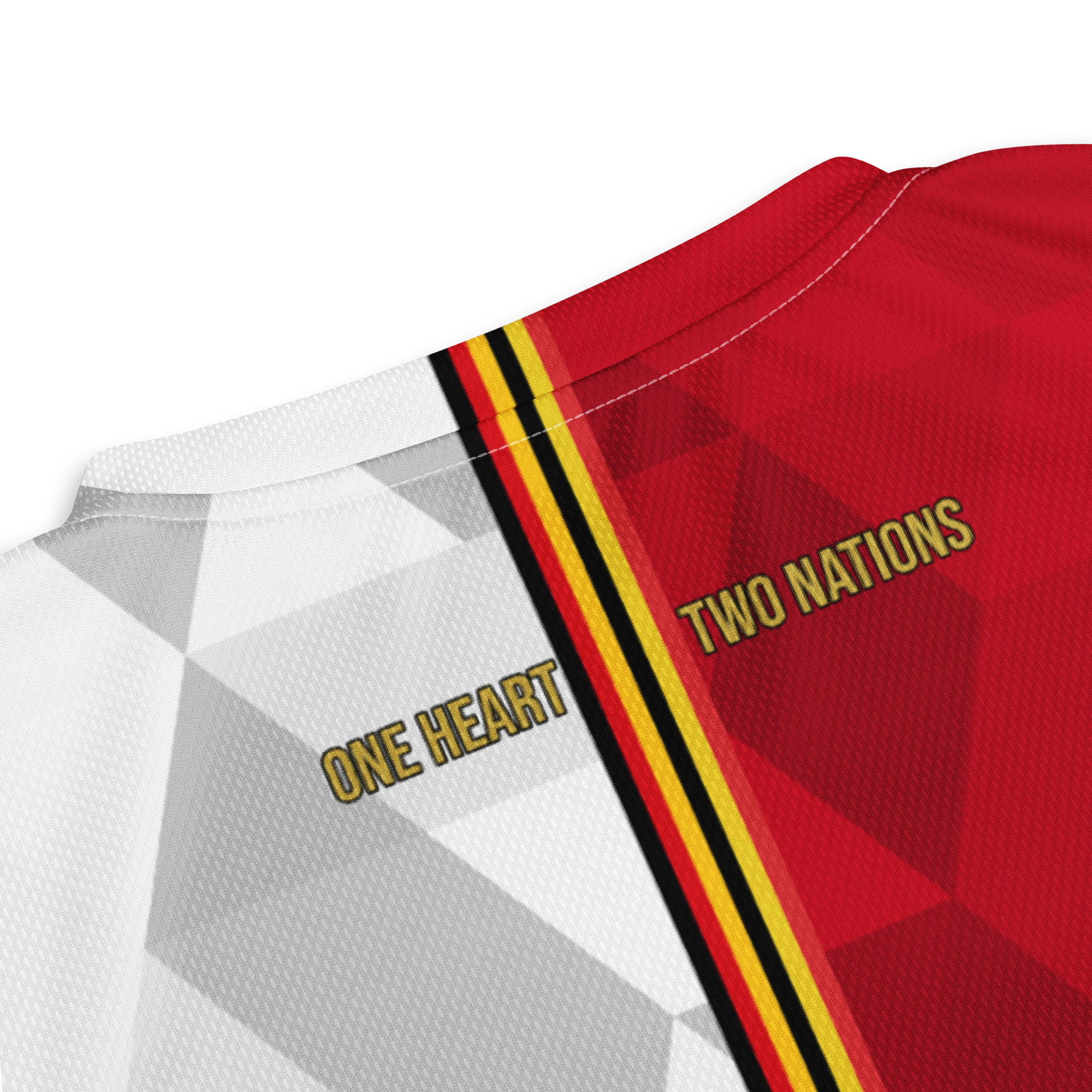 Le Maillot Belgique Allemagne Dual Nation est né pour ceux qui grandissent entre Bruxelles et Berlin, qui parlent peut-être le français, le flamand ET l’allemand, et qui savent que ces deux nations ont façonné leur identité de manière unique.