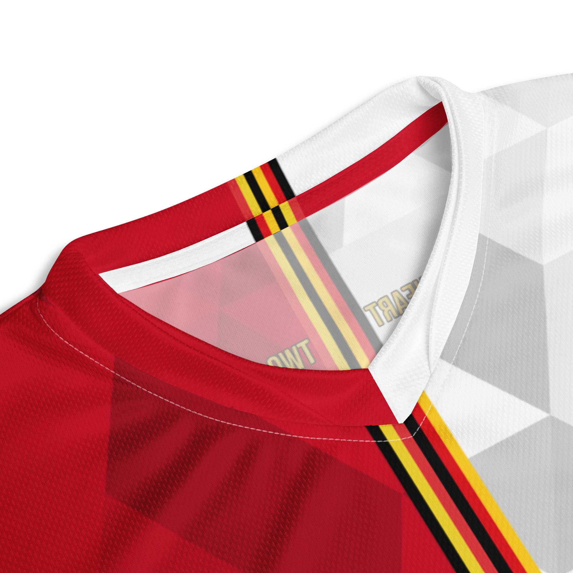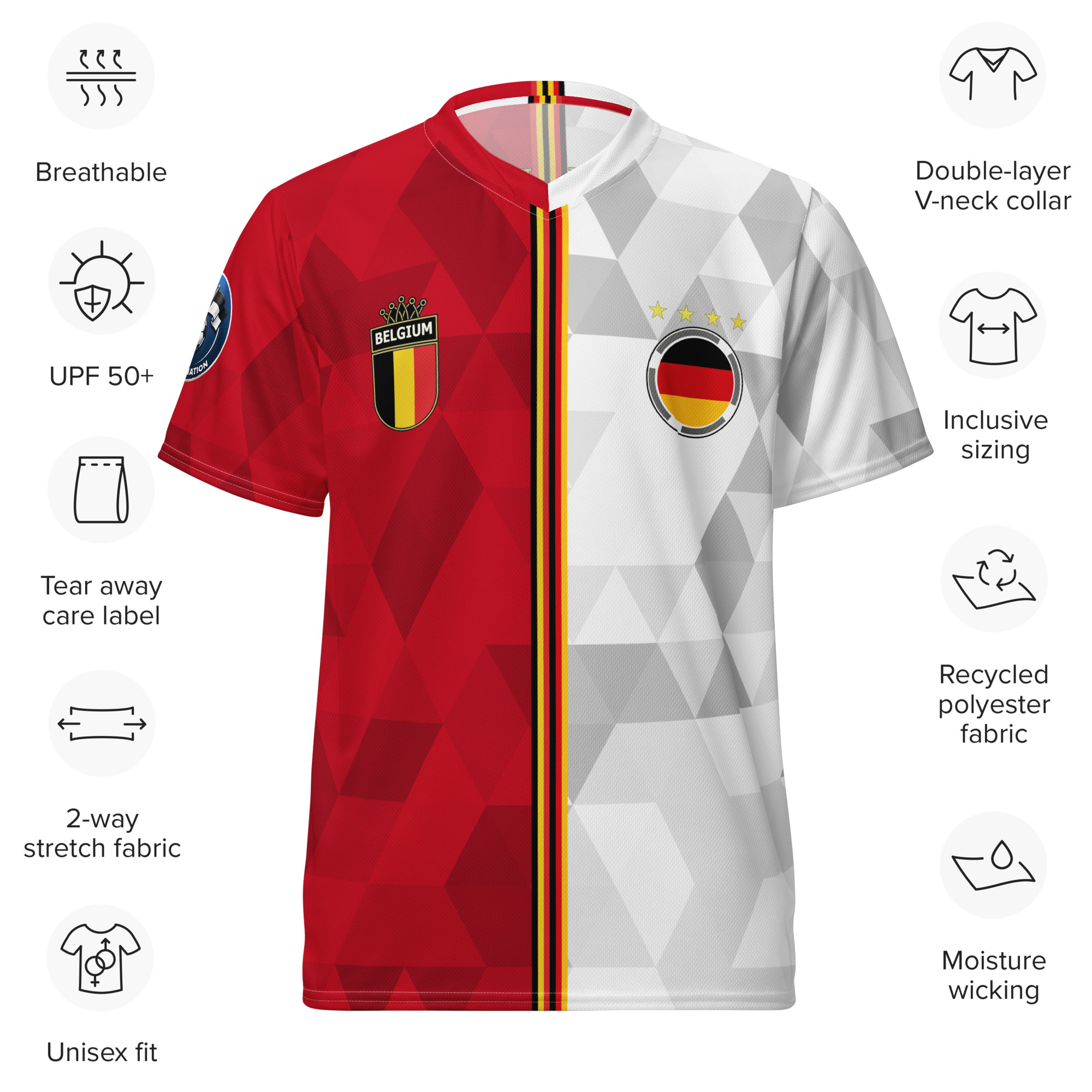 Entre la rigueur allemande et la créativité belge, tu n’as jamais eu à choisir ton camp. Ce maillot le prouve.