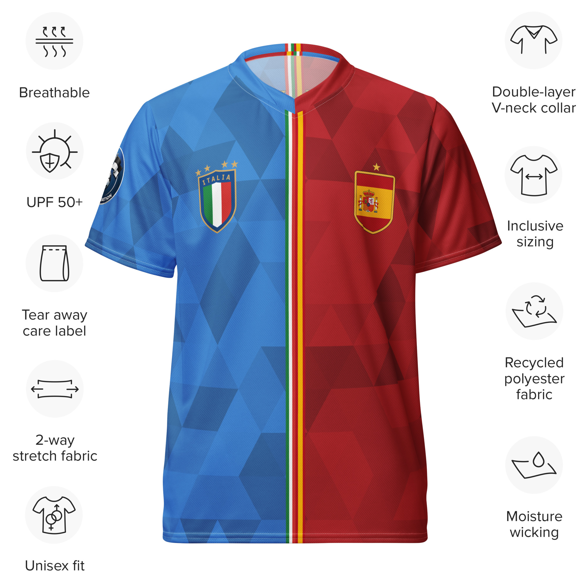 🔥 Le maillot Italie Espagne est un maillot de football double nationalité conçu pour les supporters binationaux.